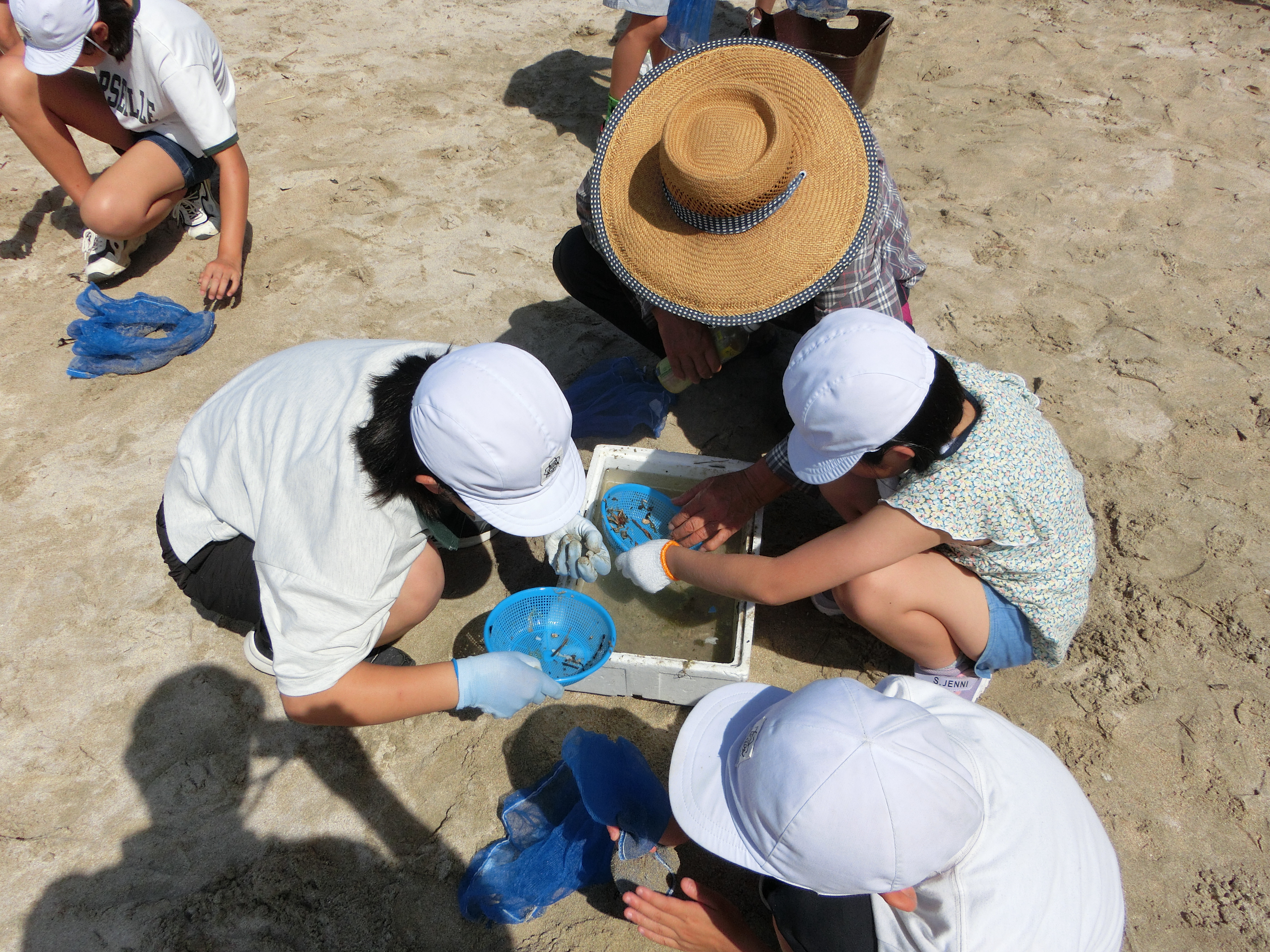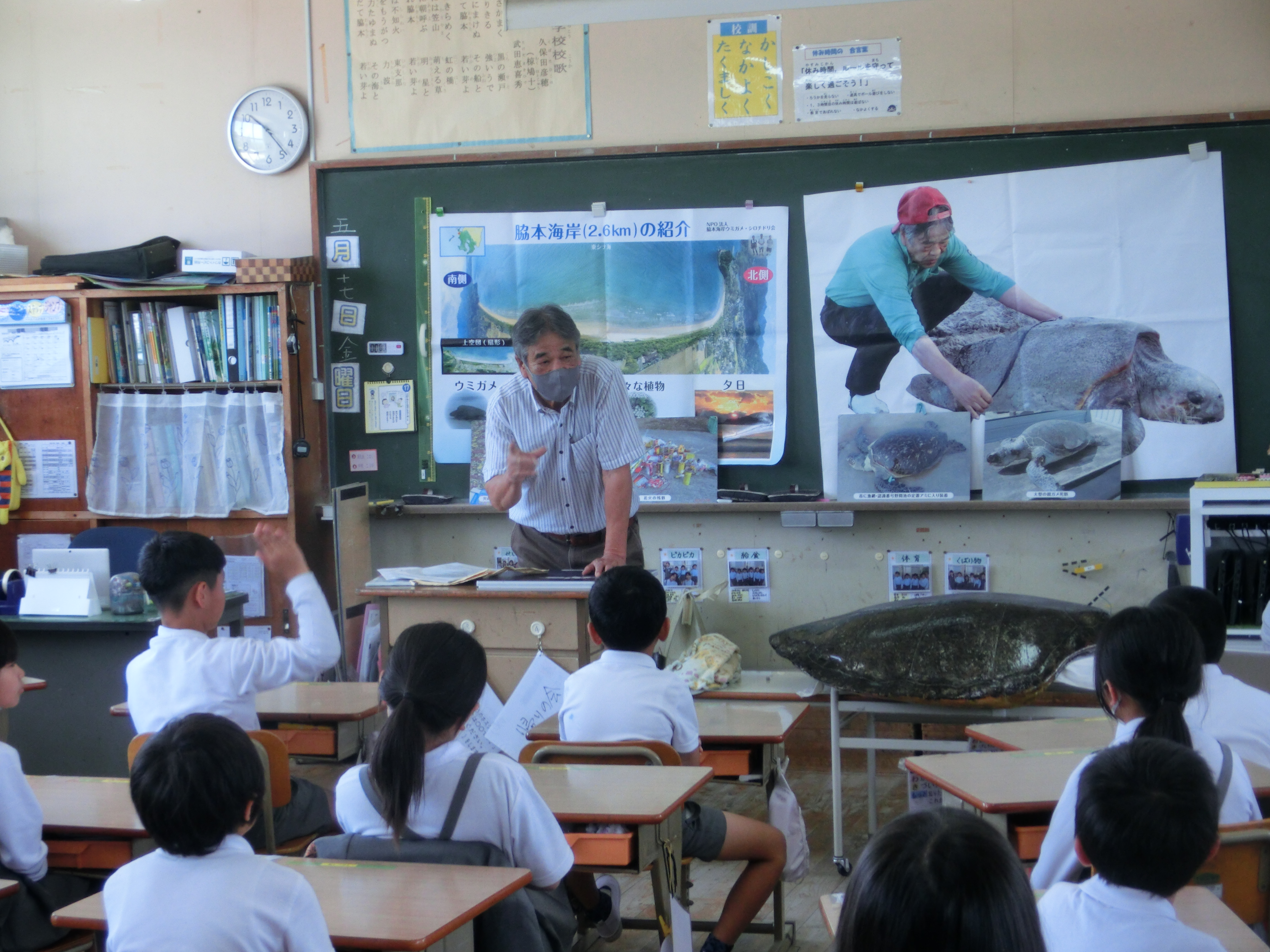 脇本海岸を中心に、本校の周りにある海や川など水辺の環境を守るための活動に取り組んでいる。NPO法人「脇本海岸ウミガメ・シロチドリ会」の支援を受け、海岸の清掃やマイクロプラスチックの回収実験、環境保護の啓発等、子供が自ら考え、主体的に行動する力の育成を目指している。